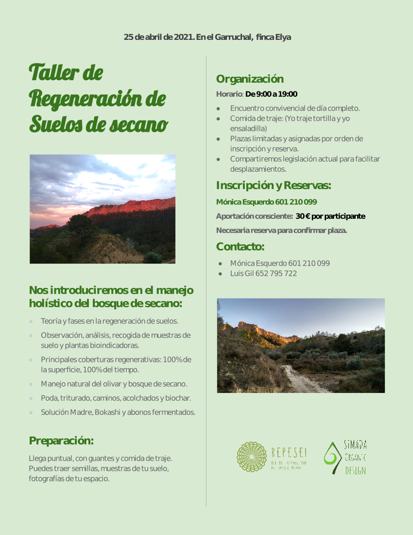 También participé en talleres de Introduccion a la Permacultura, Agricultura Orgánica, Certificados de Diseño en Permacultura, Agricultura Regenerativa, Diagnóstico de Fincas, Facilitación de Grupos, Marcos de diseño natural o Nutrición Simbiótica, entre otros.